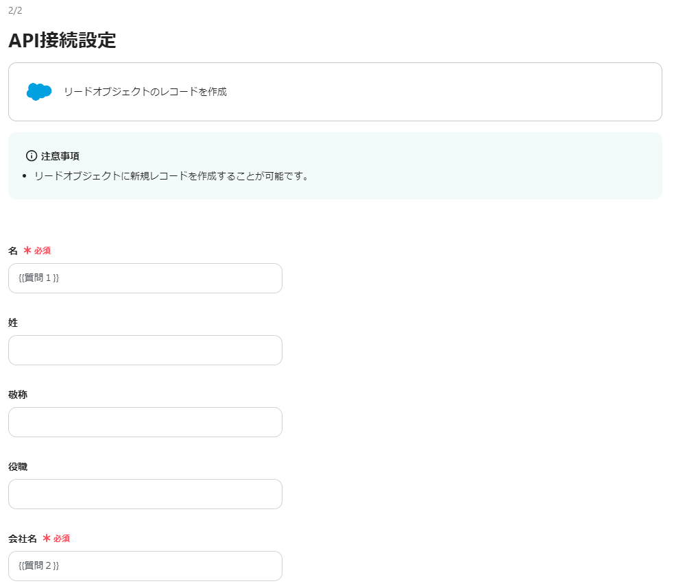 名、会社名、リード所有者ID、マイドメインURLは必須となっています。