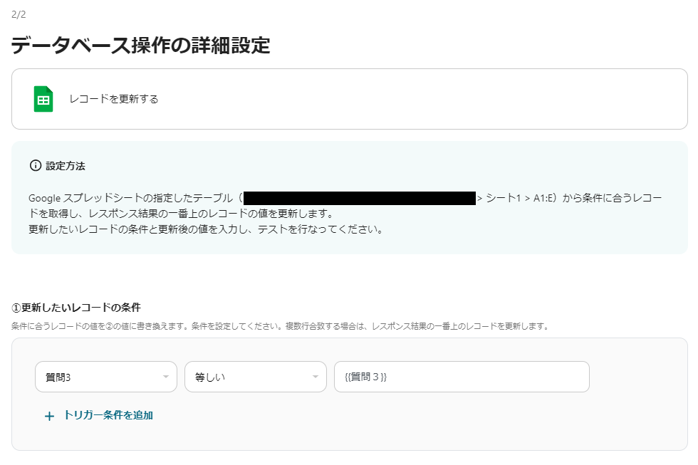 ステップ5:Google スプレッドシートのレコードを更新するアクションを設定
