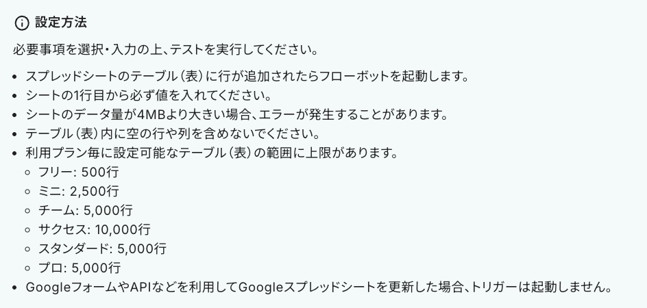ステップ3:Google スプレッドシートの行が追加されたら起動するトリガーを設定