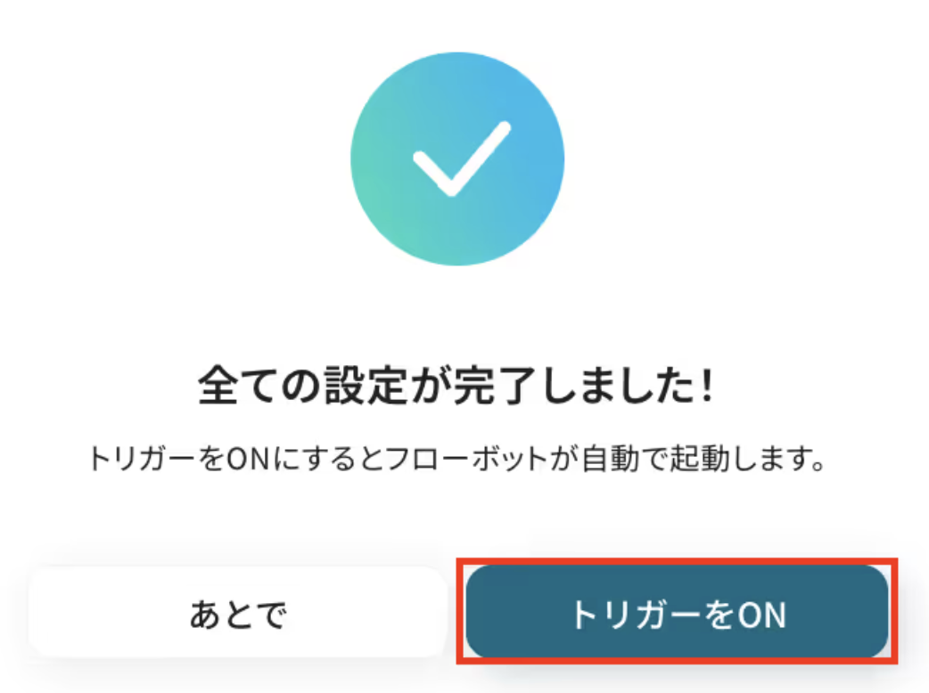 トリガーをONにしてフローの動作確認