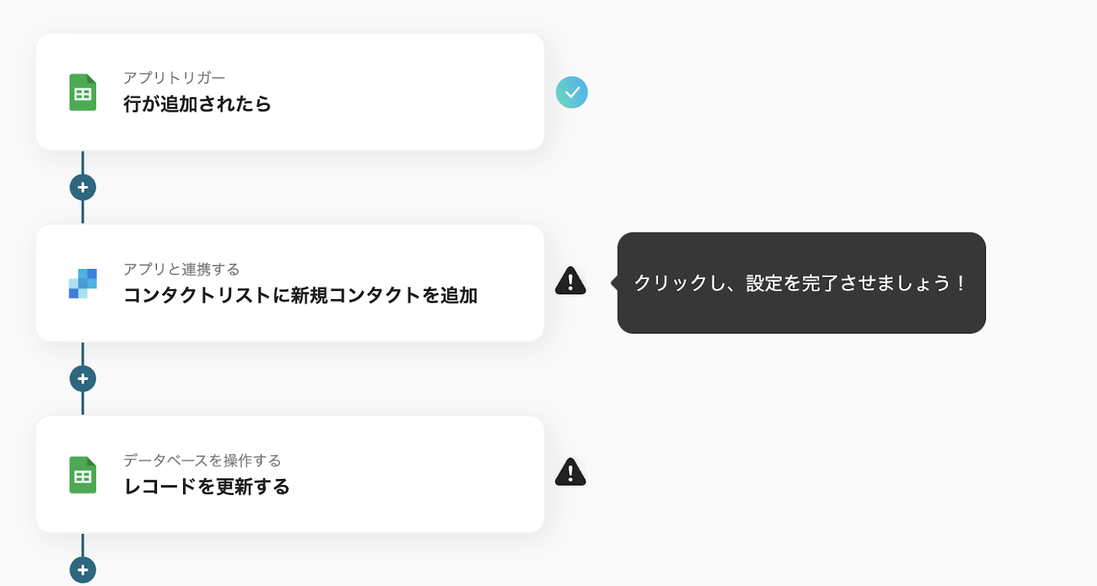 (1)次に、2つ目のアクション「コンタクトリストに新規コンタクトを追加」をクリックしましょう。