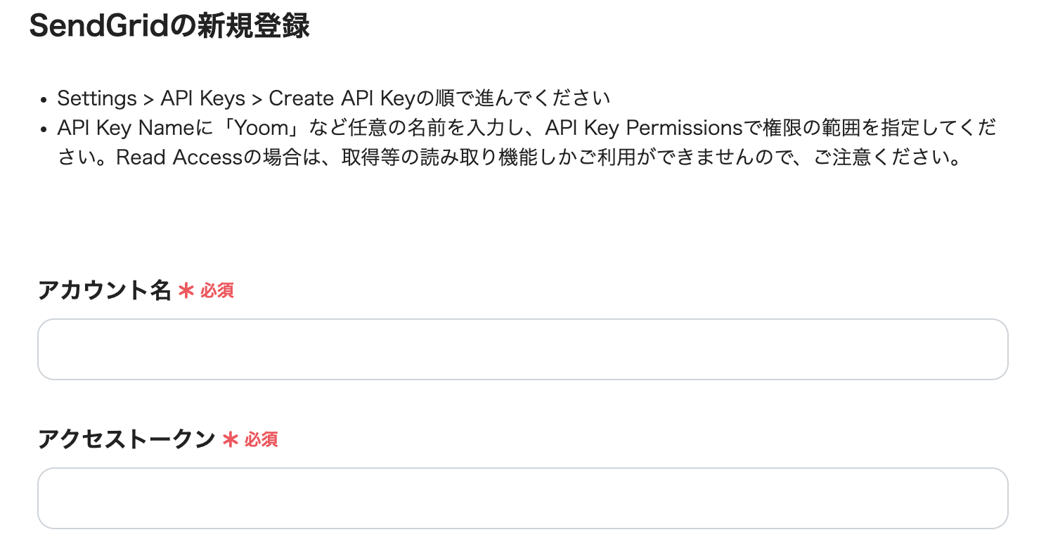 (2)連携するSendGridのアカウント情報を入力し、[次へ]をクリックします。