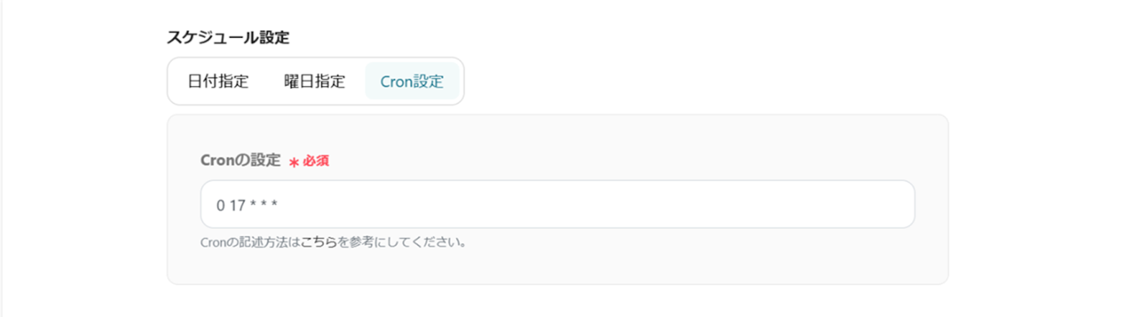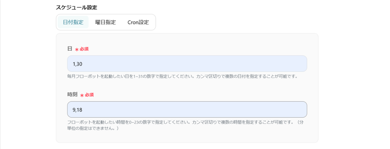 曜日指定以外にも、日付指定やCron設定を使用して自由に設定することができます!