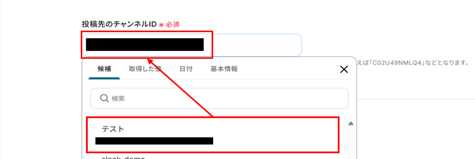インストールができたら、投稿先のチャンネルIDを候補から選択します。