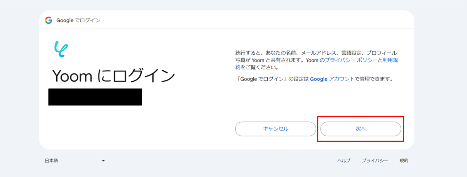 (5)Yoomがアクセスできる情報をチェックボックスから選択し、「続行」をクリックします。