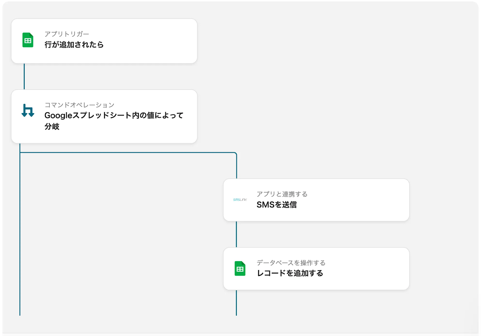 本記事では「Googleスプレッドシートのレコードが条件と一致したら、SMSLINKでSMSを送信する」フローをご紹介します。