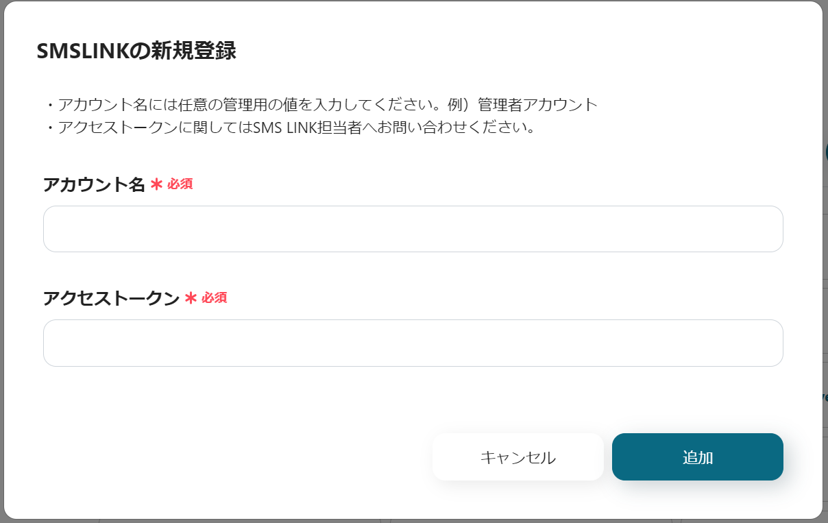 GoogleスプレッドシートとSMSLINKをYoomに接続するマイアプリ登録を行います。