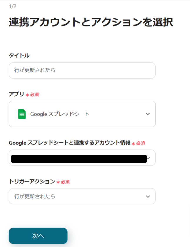 次のページでは、Googleスプレッドシートの詳細設定を行います。
