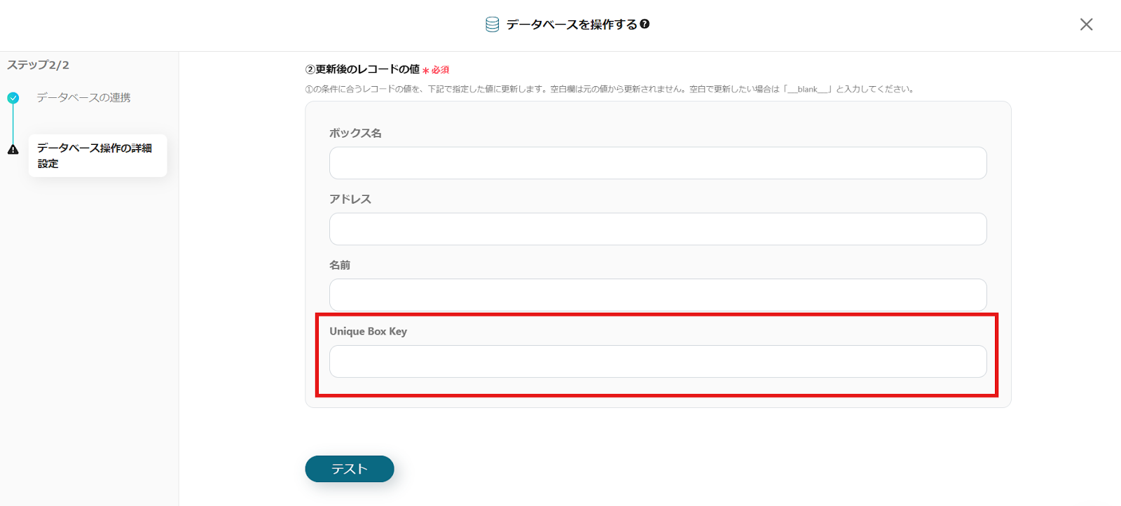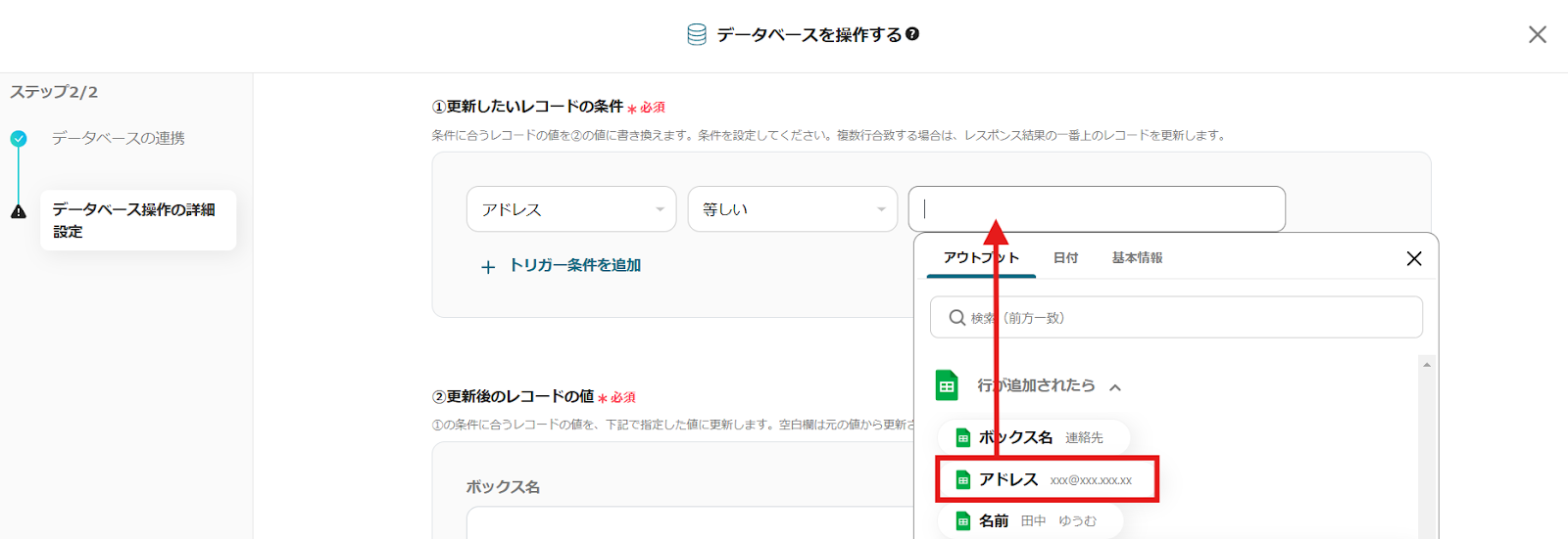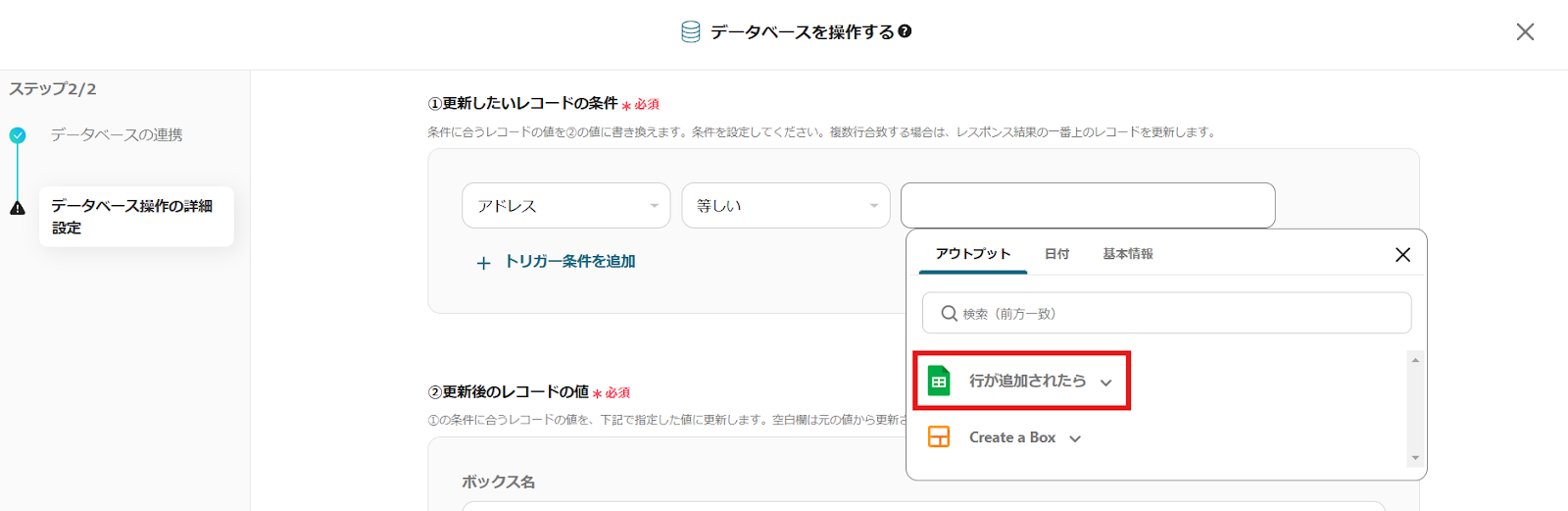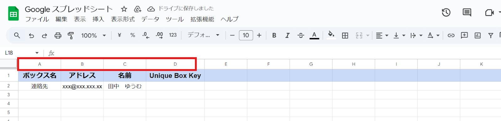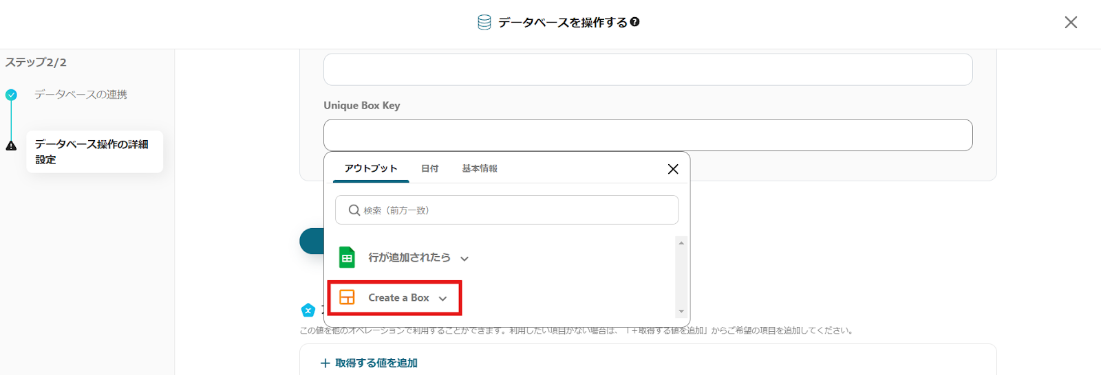 次に、Google スプレッドシートのUnique Box Key列にデータが追加されるように設定を行います。