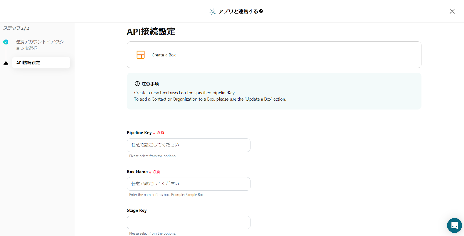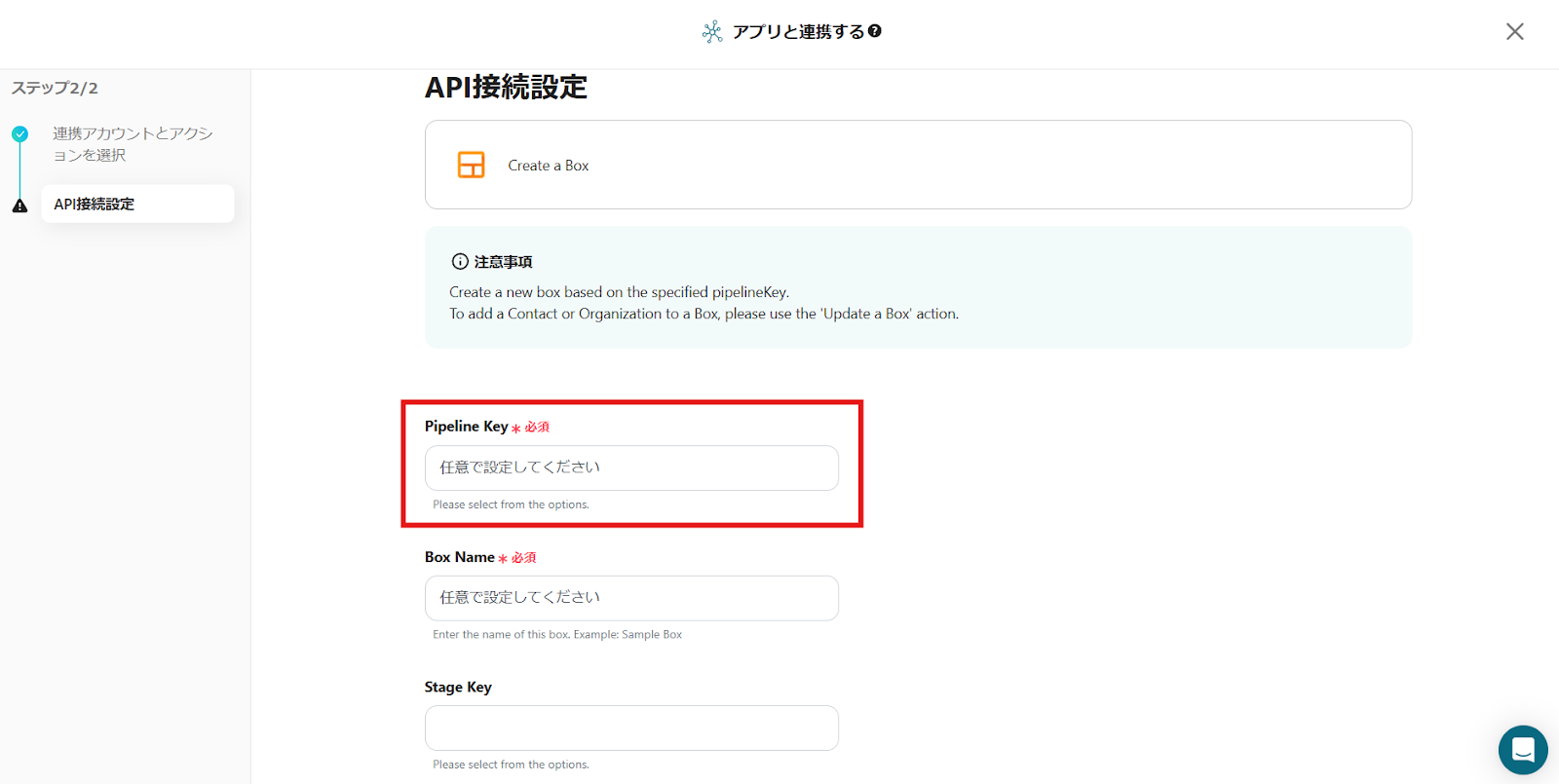 この際に、必ず「Box Name/ボックス名」「Unique Box Key」を作成しておきましょう