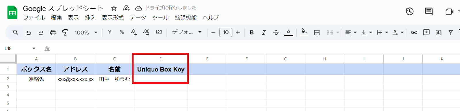 続けて、Streakのボックスを追加した際に作成されるUnique Box KeyをGoogle スプレッドシートに追加する設定を行います。
