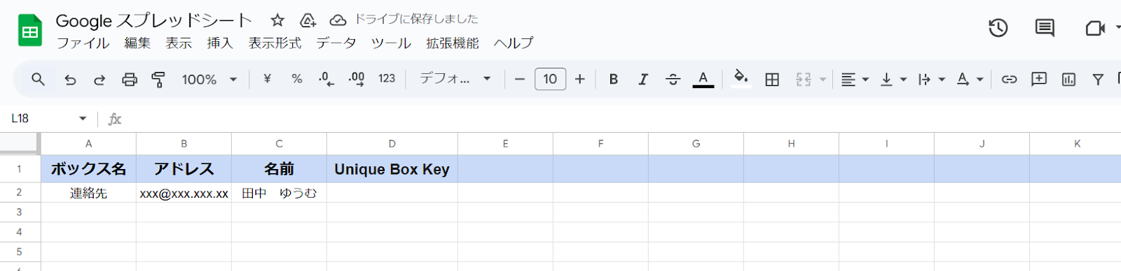 これにより、新しく作成したStreakのボックスのUnique Box KeyがGoogle スプレッドシートでも確認可能になります。