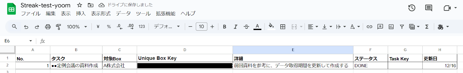 Google スプレッドシートでタスク情報を更新すると、自動でStreakに反映できます。