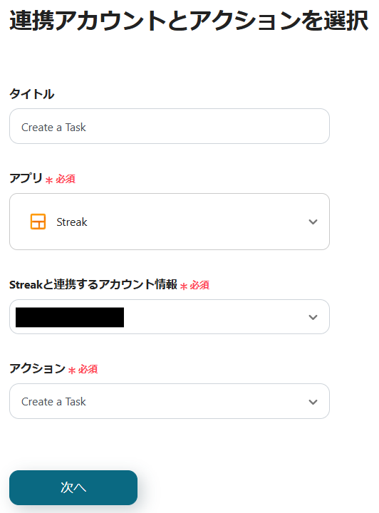 2.Streakと連携するアカウントを確認し、「次へ」をクリックします。
