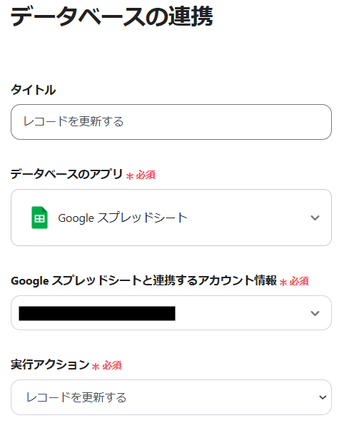 ※今回は、シートの項目を下記画像のように設定しているため、上記画像のように「更新後のレコードの値」が表示されています。