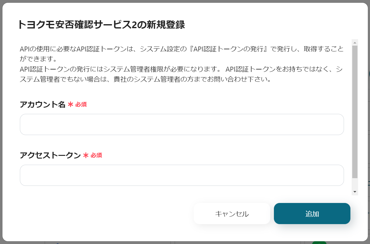 ・kintone、トヨクモ安否確認サービス2のそれぞれとYoomを連携してください。