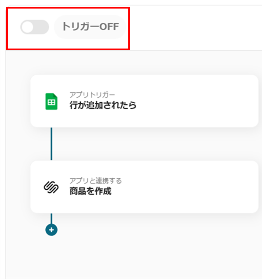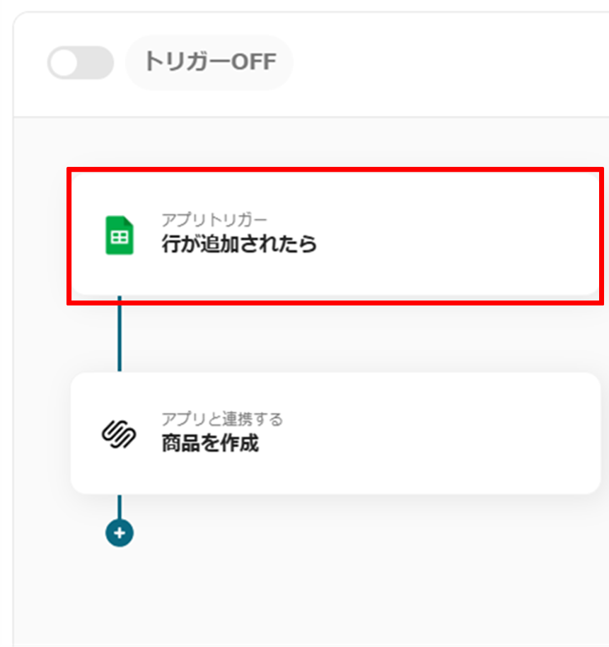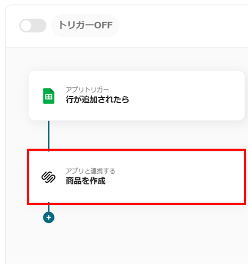 はじめに、GoogleスプレッドシートとSquarespaceをYoomに連携します。 次に、トリガーでGoogleスプレッドシートを選択し、「行が追加されたら」というアクションを設定し、対象のシートを指定します。 次に、オペレーションでSquarespaceを選択し、スプレッドシートの情報を元に「商品を作成」するアクションを設定します。 最後に、オペレーションでGoogleスプレッドシートを選択し、Squarespaceへの登録が完了したことを示すステータスなどを更新する「レコードを更新」アクションを設定します。 ※「トリガー」:フロー起動のきっかけとなるアクション、「オペレーション」:トリガー起動後、フロー内で処理を行うアクション