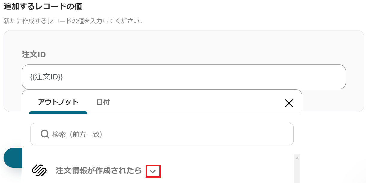 「トリガーアクション」→注文情報作成・更新されたら