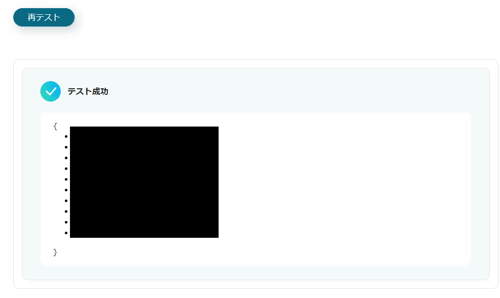 入力完了後、テストボタンで動作確認をすることができます。