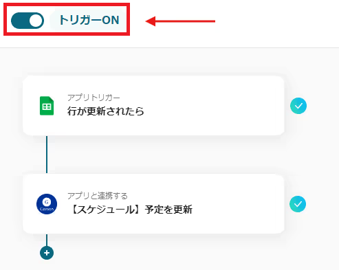 たとえばGoogle スプレッドシートでタスクの進行状況を更新するたびに、その情報が自動的にGaroonのカレンダーにも反映されるように設定するとします。