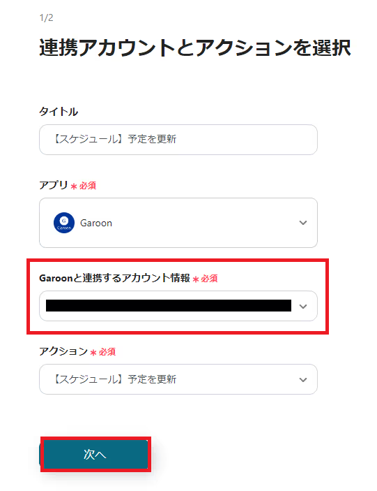 連携するアカウント情報を入力して「次へ」を押してください。