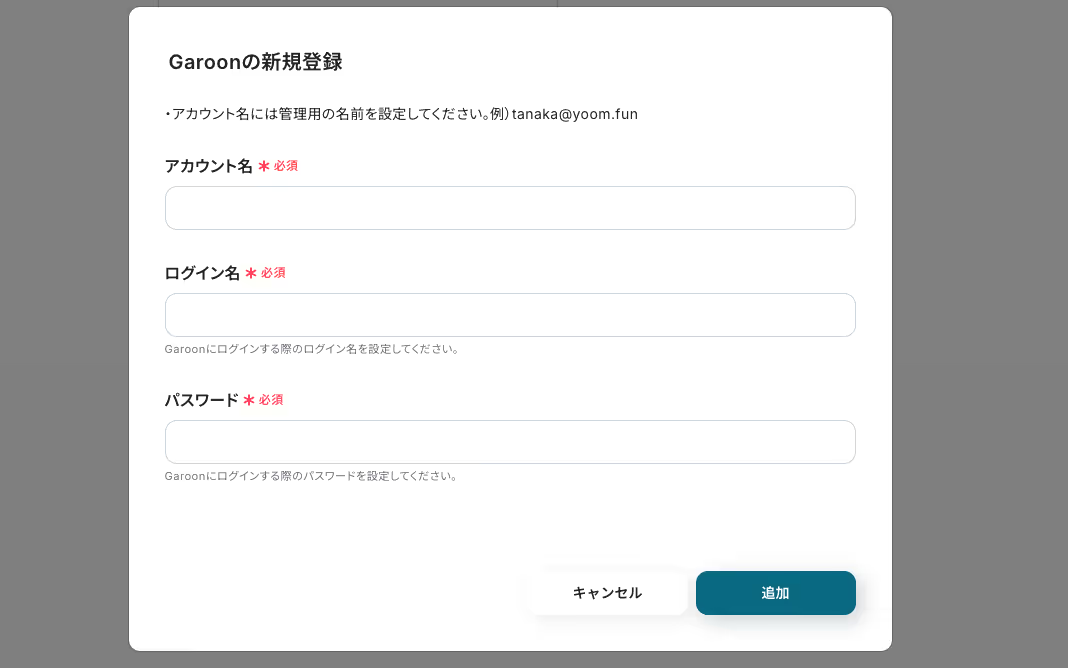 ・Googleフォーム、GaroonのそれぞれとYoomを連携させてください。