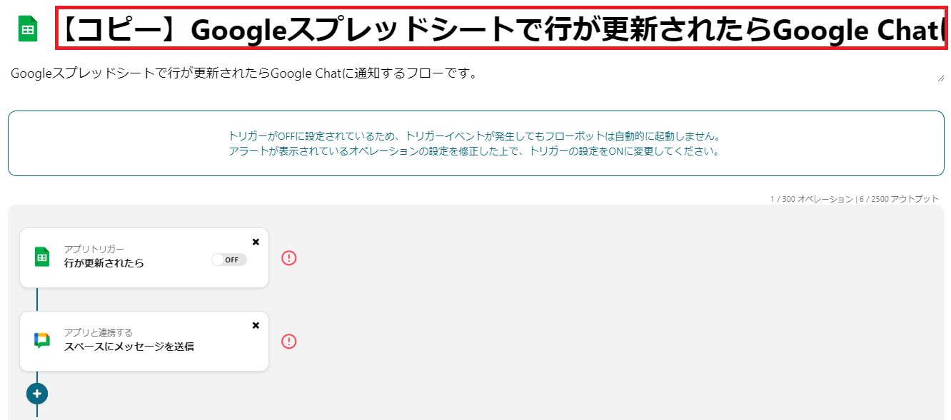以上で、Google スプレッドシートで行が更新されたらGoogle Chatに通知する フローの完成です。
