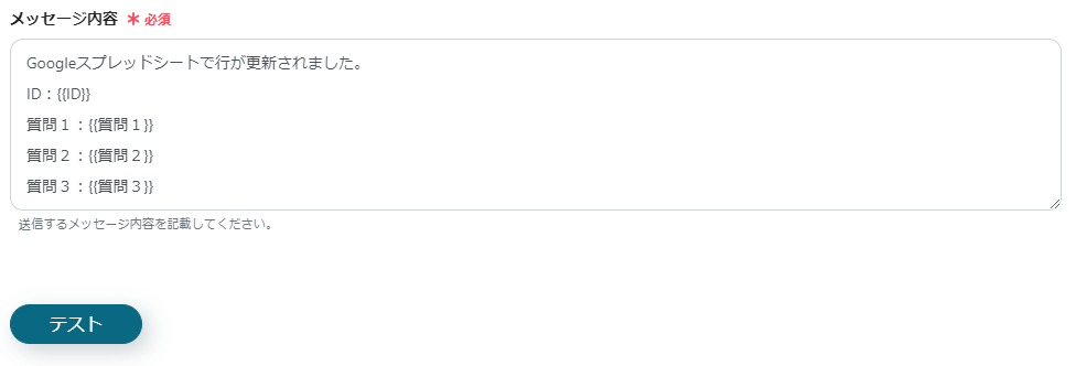 これにより、Google スプレッドシートで情報が更新されたら、Google Chatに自動で通知が届きます。