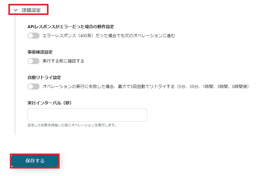 下にスクロールして、任意で詳細設定を設定してください。