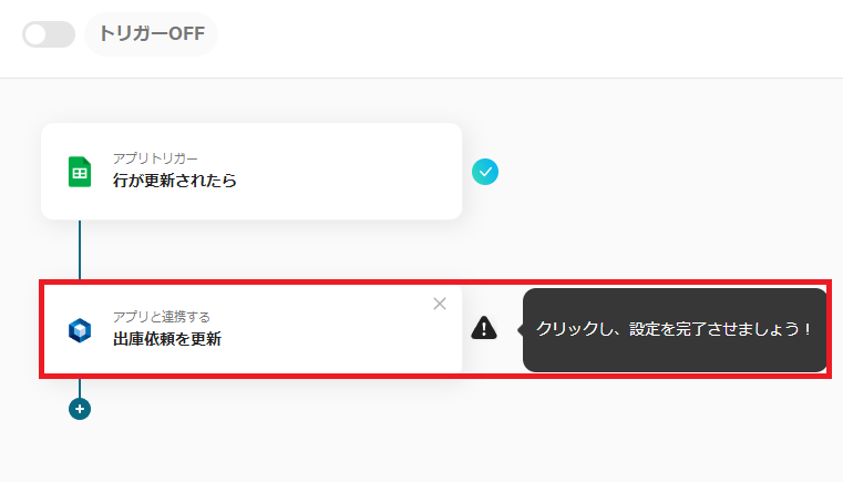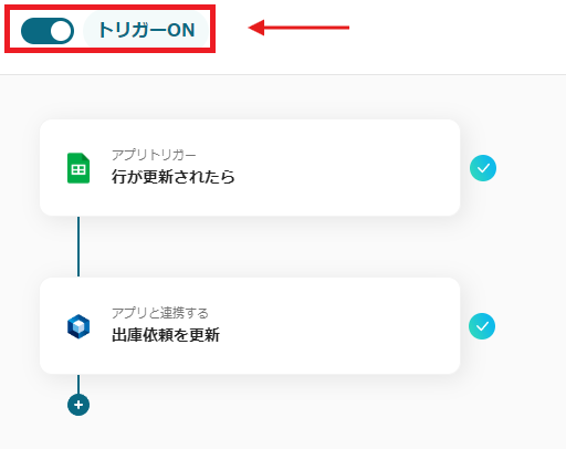 これで「Googleスプレッドシートで行が更新されたらオープンロジの出庫依頼も更新する」の設定はすべて完了になります。