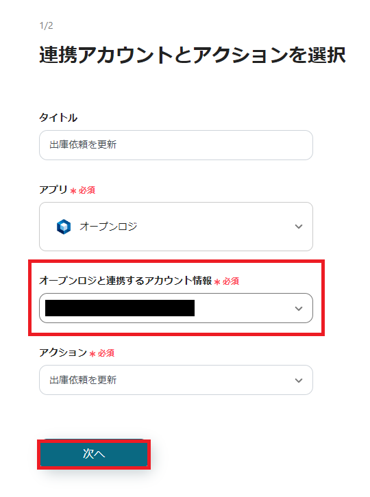 次に「出庫依頼を更新」を選択して、連携するアカウント情報を入力してください。