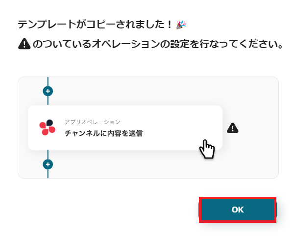 これでテンプレートのコピーまで完了しました。ポップアップが表示されるのでOKを押します。