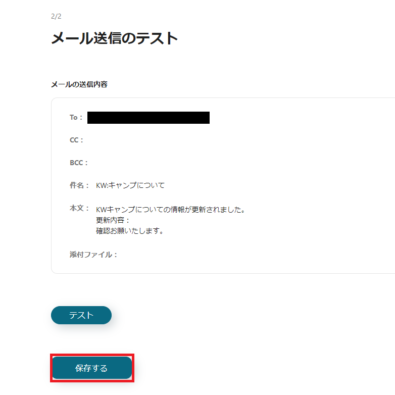 下にスクロールしていくとメール内容の設定項目が出てくるので、送信したいメール内容を任意で設定してください。