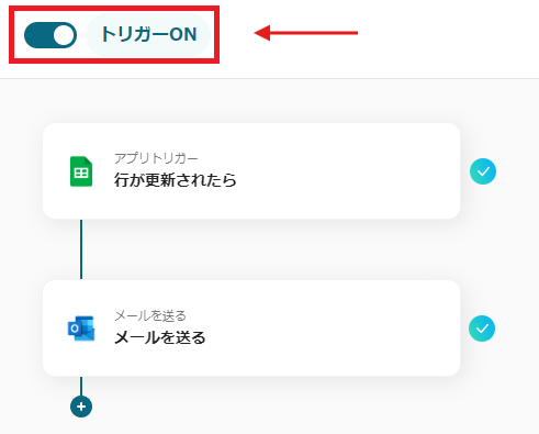 これで「Google スプレッドシートで行が更新されたらOutlookでメールを送信する」の設定はすべて完了になります。