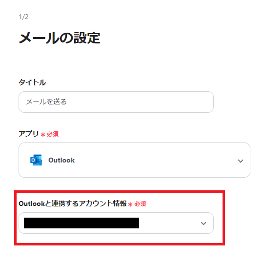 次に「メールを送る」を選択して、連携するアカウント情報を入力してください。