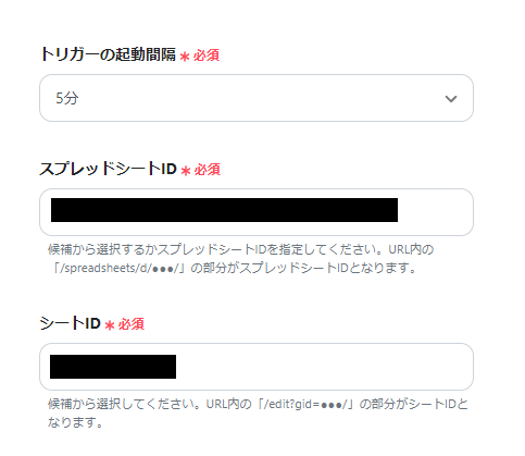 Google スプレッドシートIDはご自身のスプレッドシートを使用してください。