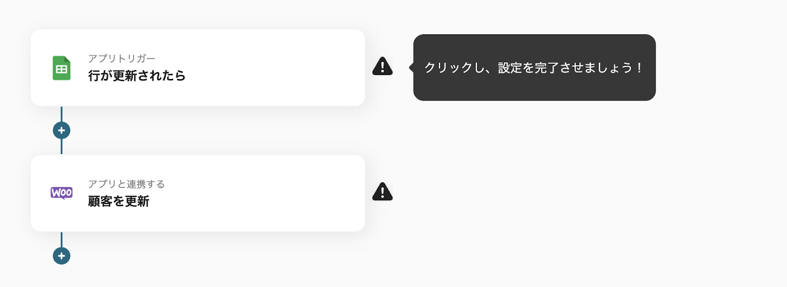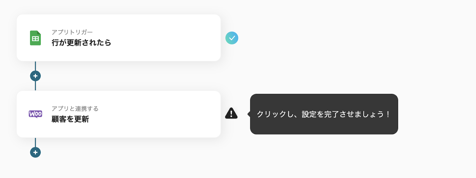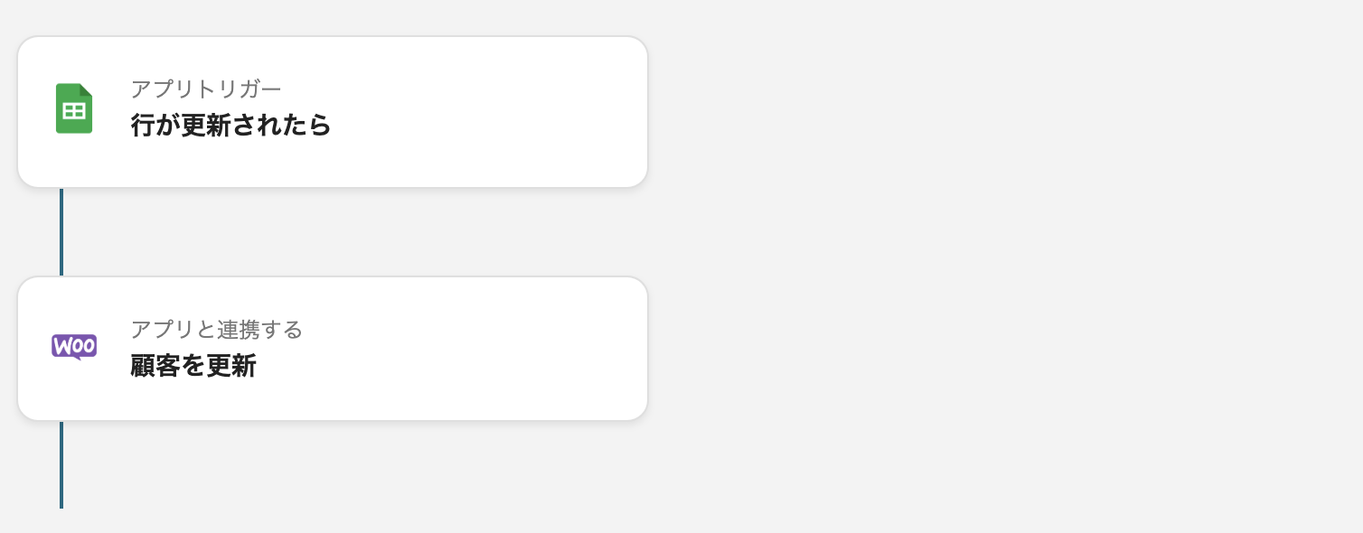 Google スプレッドシートに顧客情報が追加されたら、自動でWooCommerceにも情報を追加するフローです。