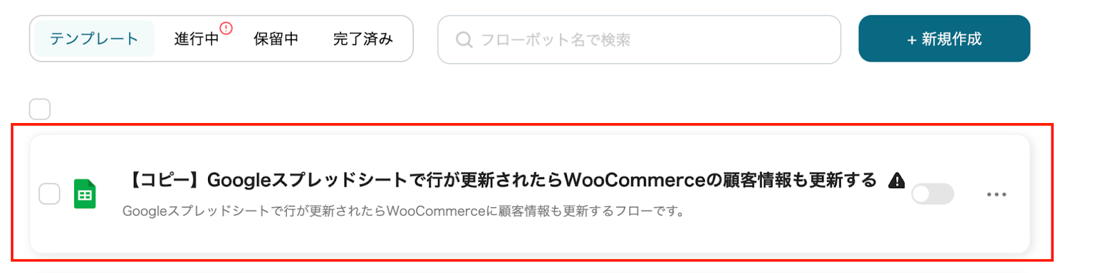 それでは、実際に「Google スプレッドシートで行が更新されたらWooCommerceの顧客情報も更新する」のテンプレートを使ったフローボットを作成していきましょう。