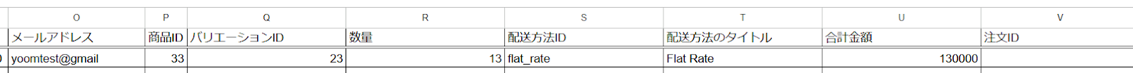 Google スプレッドシートに移動して、テスト用に注文情報を入力します。
