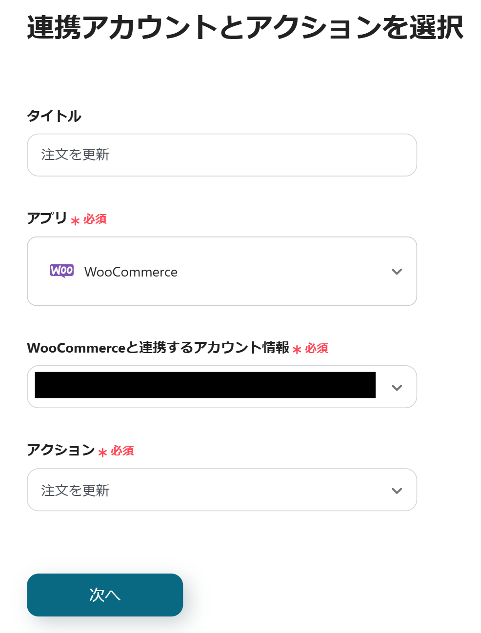 次に、WooCommerceの設定を行うので、「注文を更新」をクリックします。