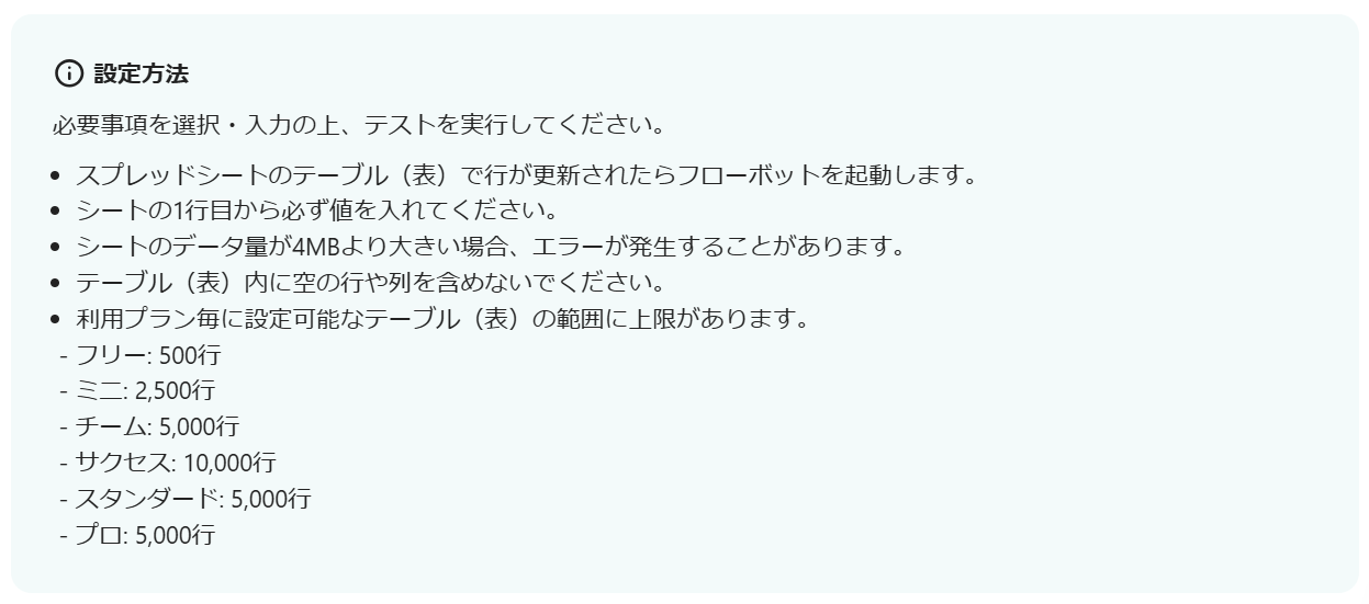 Google スプレッドシートに設定した内容がアウトプットとして表示されます。