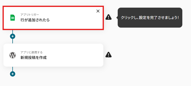 はじめに、Google スプレッドシートとWordPress.orgをYoomと連携します。 次に、トリガーでGoogle スプレッドシートを選択し、「行が追加されたら」というアクションを設定して、対象のスプレッドシートとシートを指定します。 最後に、オペレーションでWordPress.orgの「新規投稿を作成」アクションを設定し、スプレッドシートの各列の値を、投稿のタイトルや本文などに設定します。 ※「トリガー」:フロー起動のきっかけとなるアクション、「オペレーション」:トリガー起動後、フロー内で処理を行うアクション