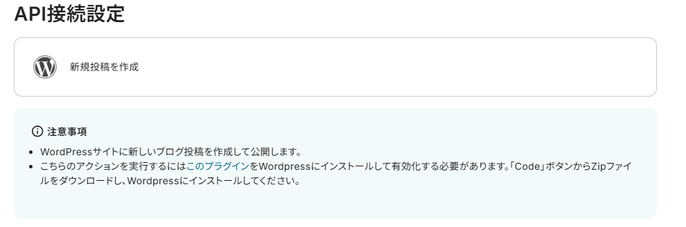3. API接続設定を行います。 ※注意事項を参考に、WordPress.orgのプラグイン設定を行ってください。