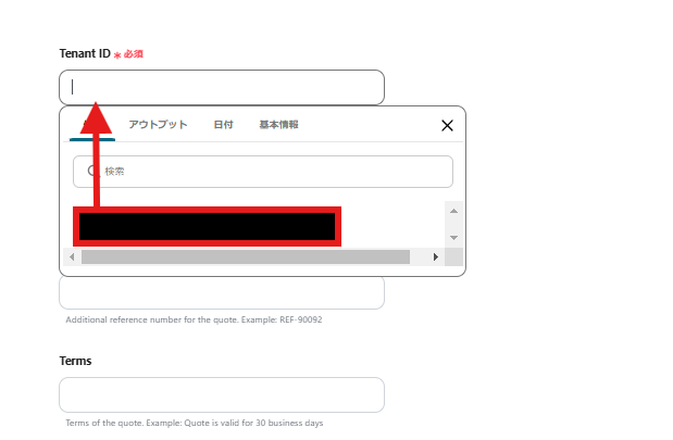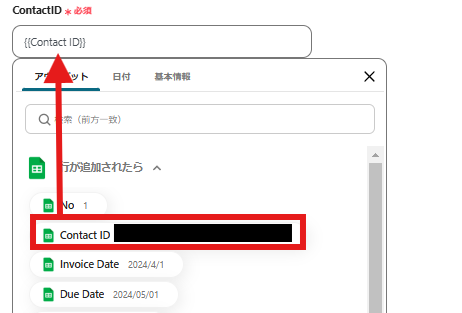 入力したい項目をクリックすることで、今回連携したアプリの内容を入力することが可能です。