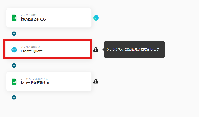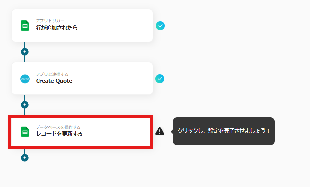 最後に見積書が作成されたら、スプレッドシートを更新するための設定を行います。