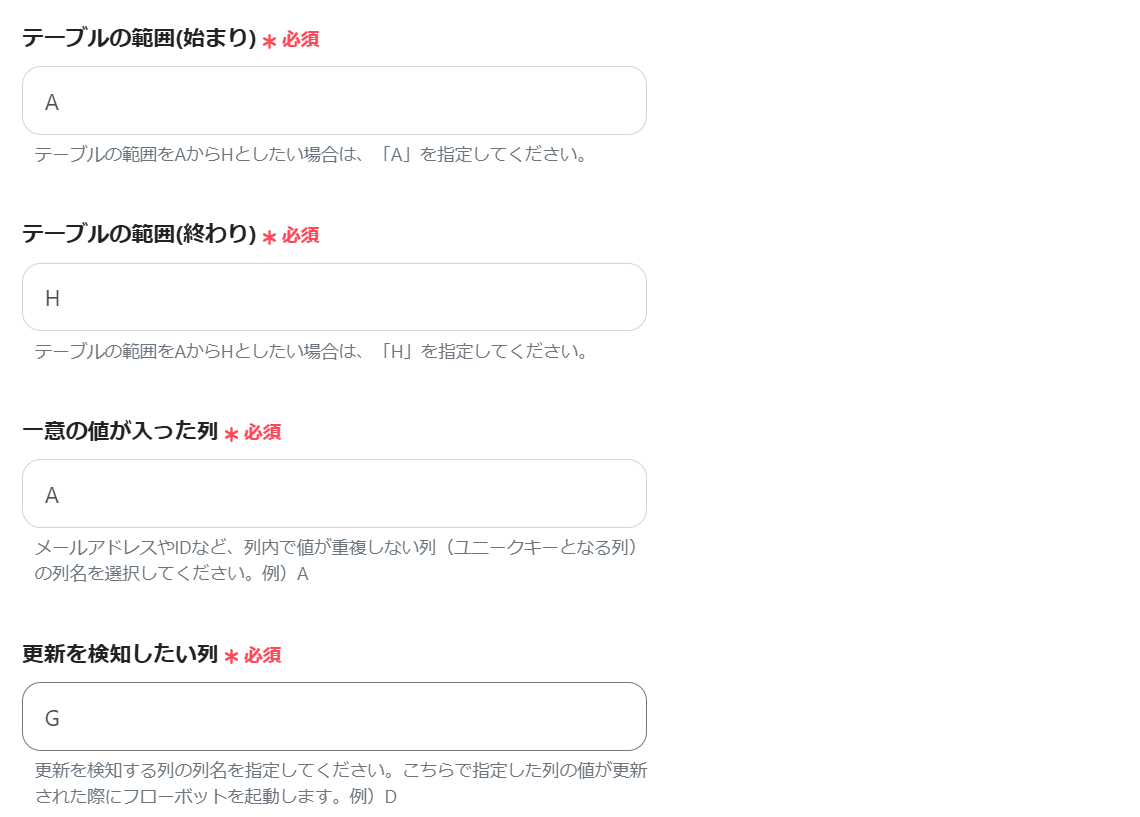 (更新を検知したい列に設定してあるため)