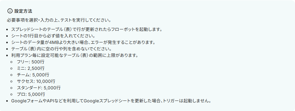 ・フリープラン、ミニプランの場合は設定しているフローボットのオペレーションはエラーとなりますので、ご注意ください。