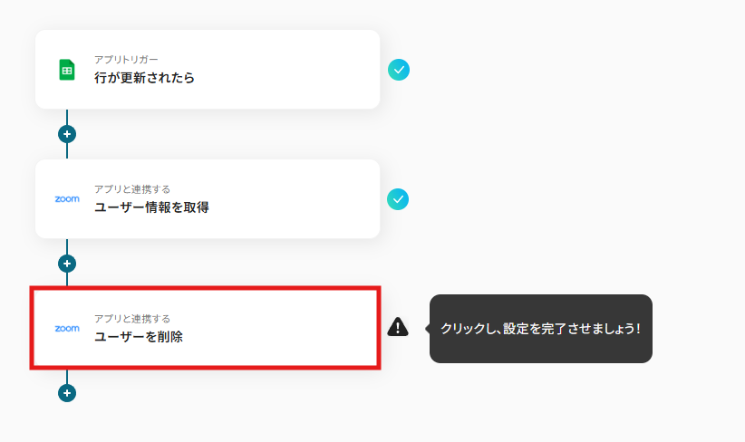 このワークフローを活用すれば、Google スプレッドシートの行情報を更新するだけでZoomの該当ユーザーを自動で削除できるため、安全かつ効率的なアカウント管理を実現できるはずです。