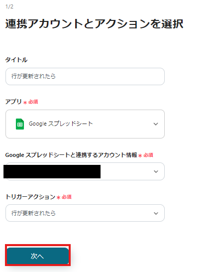 まずは、アプリトリガー「行が更新されたら」をクリックしましょう。