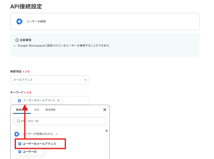 Google Workspace でユーザー情報を検索するための設定を行います。